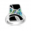 925 Sterling Silver Inlay ring with 0.02cts.T.W.of Diamond Accents, .04cts.T.W.of Blue Sapphire & Tsavorite, Black Agate & Abalone