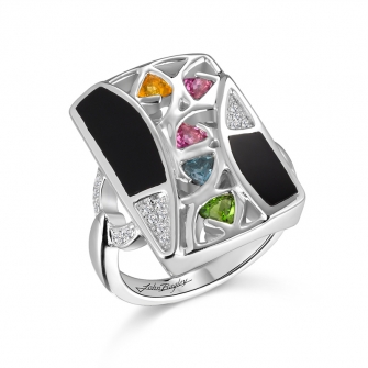 925 Sterling Silver Inlay with 0.11cts.T.W. of Diamond Accents, 0.54cts.T.W. of Multi-Color stones, Black Agate x2