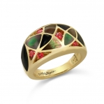 14K Yellow gold Pendant with 0.19cts.T.W.of Orange Sapphires, Black Agate x 4, Black MOP x 2, Brown MOP x 3