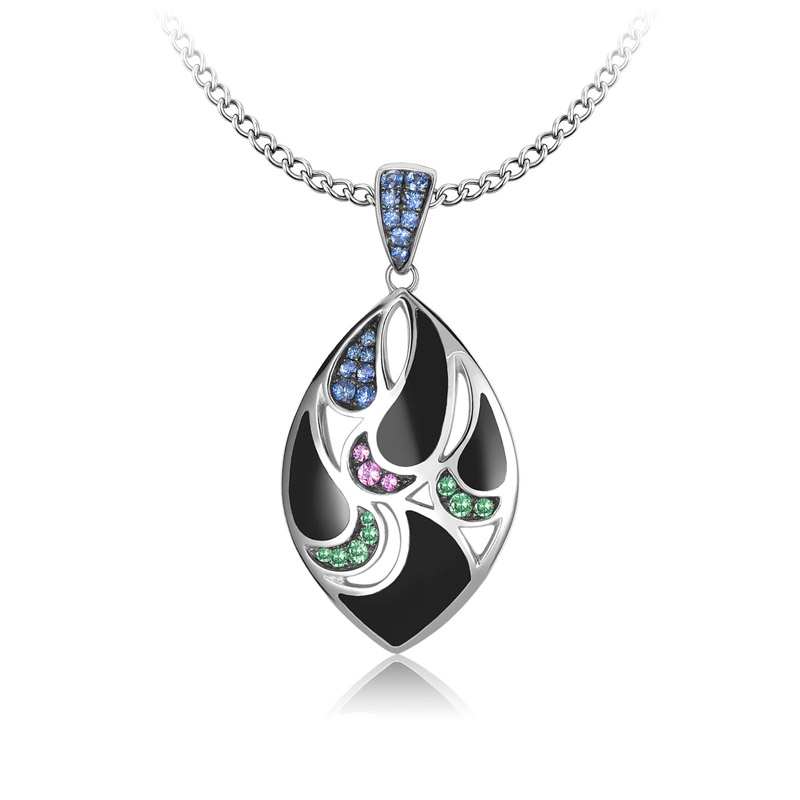 925 Sterling silver Inlay Pendant with 0.65cts.T.W.of Multi-Color Sapphires, Black Agate x3