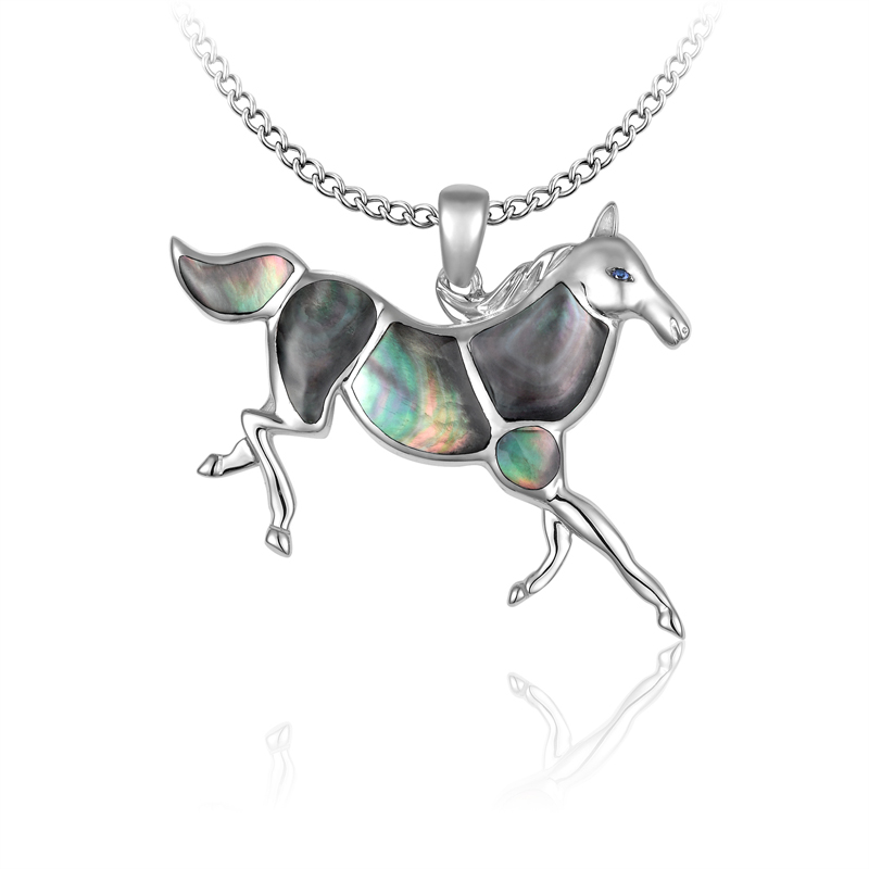 925 Sterling Silver Inlay Pendant with 0.01cts.T.W. of Blue Sapphire, Black MOP