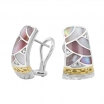 925 Sterling silver/18K Yellow gold Inlay Earring with 0.09cts.T.W.of Aquamarine, Pink Mother of Pearl